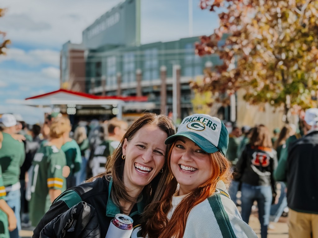 By Sunday, we’d traded the homecoming chaos for Lambeau Field. Packers vs. Bengals. Packers won 27–18. It was one of those flawless Wisconsin fall days… upper 50s, the kind of light that moves between sun and cloud like it’s dancing. We pregamed at a house just a few blocks from the stadium, music and laughter spilling out into the cool air, before wandering through the Titletown area and taking in the day.